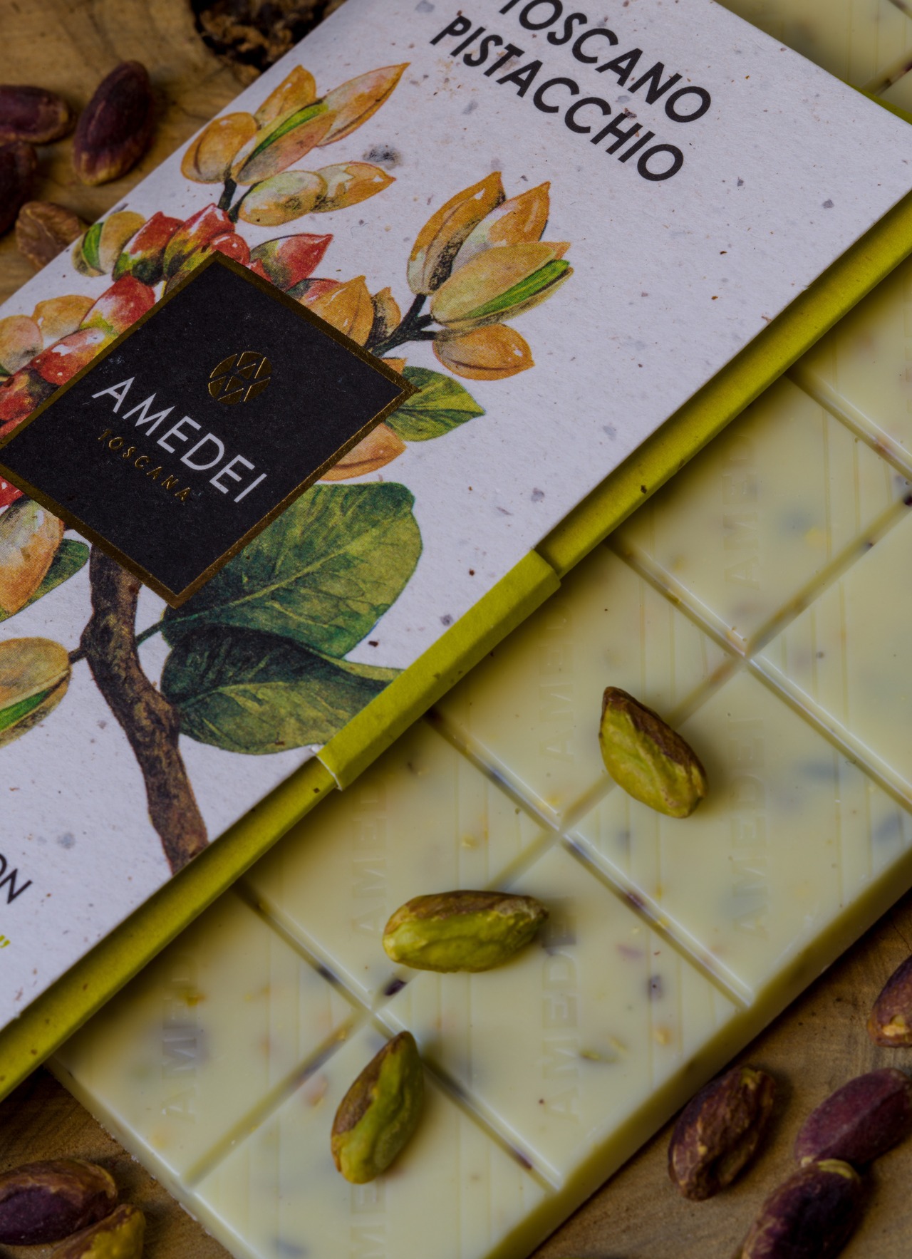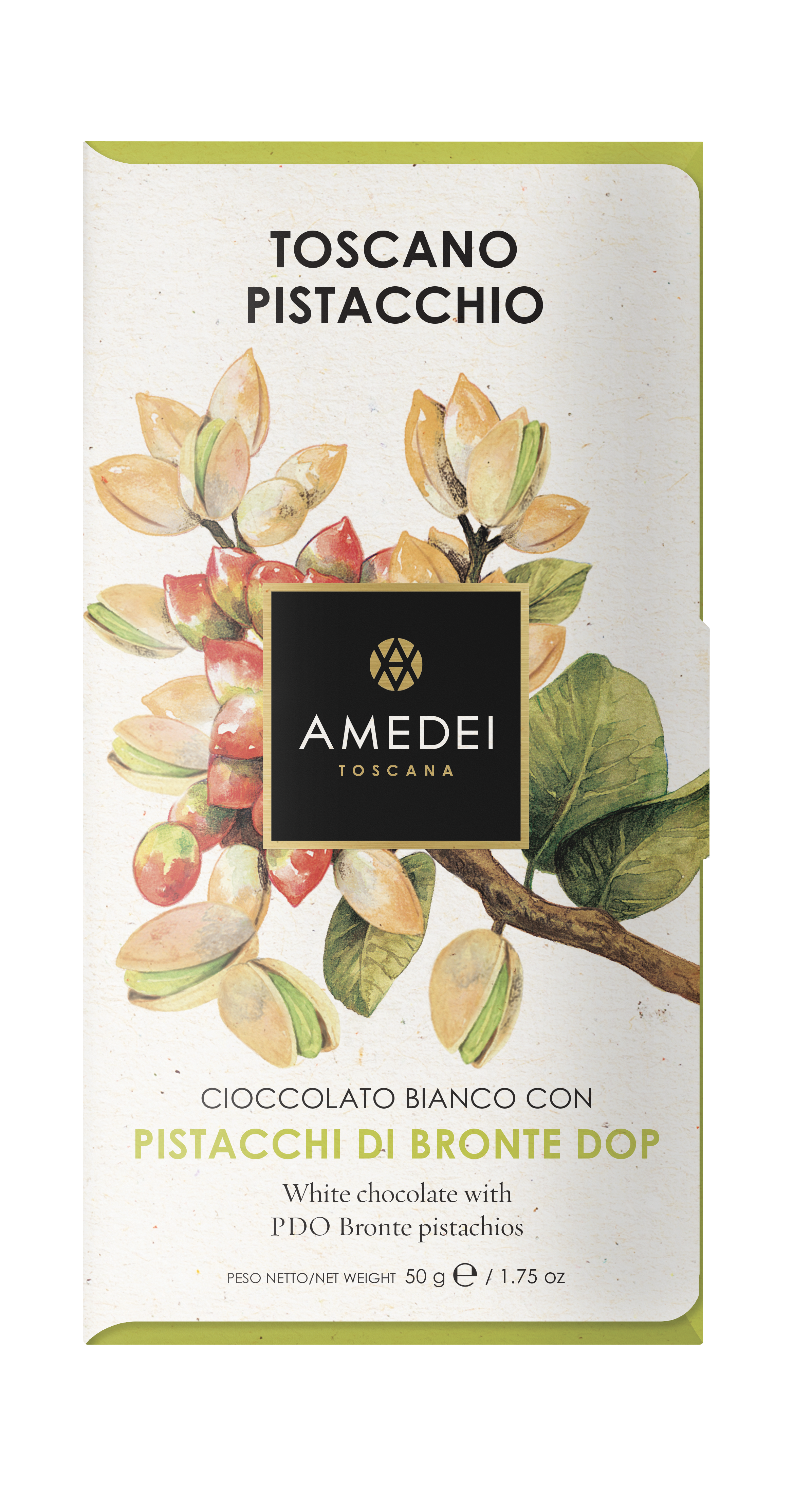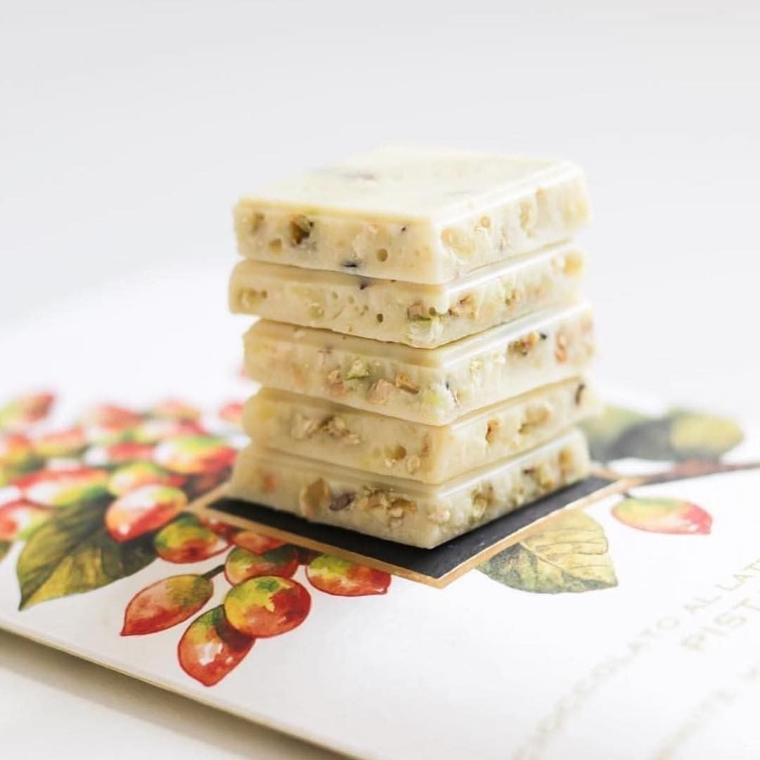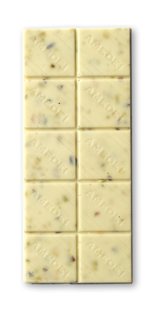 ピスタチオの最高品種と言われるシチリア・ブロンテ産のピスタチオ(10%)が入ったホワイトチョコレート。上品でサラっとした味わいで不動な人気商品。
